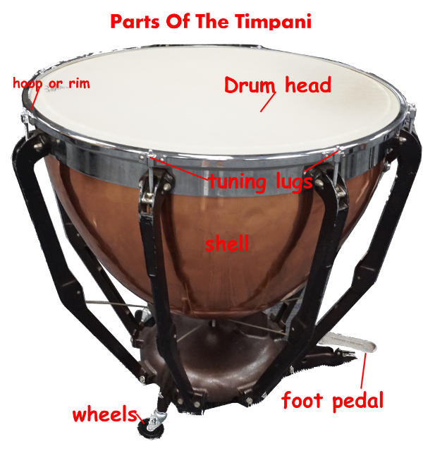 - the wheels-most timpani have 2 or 3 wheels to make rolling them from place to place easier.
