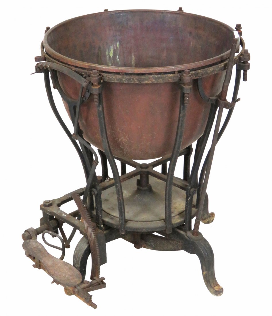 After further refinement to the foot mechanism, and the introduction of plastic heads, modern timpani generally look like this (original image)-