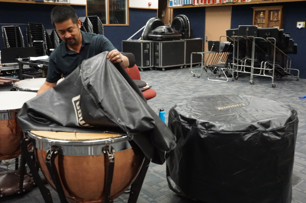 - Put the covers on. If your school has covers for the timpani, make sure they go back on at the end of every rehearsal. This will reduce the amount of dust and dirt that collects. Your school may also have cardboard cutouts that go on top of the heads before the covers go on; if they are present make sure you use them too.